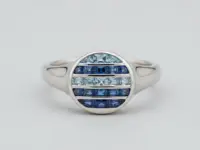 Glistening sapphires, aquamarines, and London Blue topaz are channel-set in this elegant and timeless blue-hued signet ring.